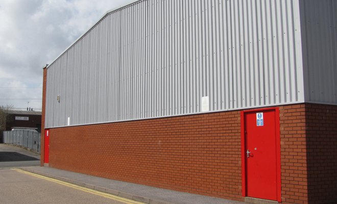 Demolition works included removal of a complete portal frame bay with asbestos roof cladding together with the existing gable end wall. The new build construction comprised of a new gable end wall, fire doors, associated steelwork, substructure and internal block-work skin.